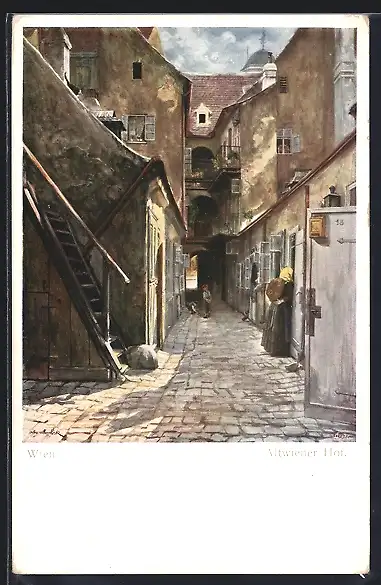 Künstler-AK Wien I, Blick in einen Altwiener Hof