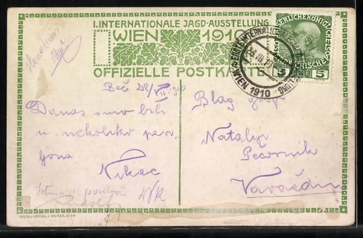 Künstler-AK Wien, Jagd-Ausstellung 1910, Kaiserl. Jagdschloss Mürzsteg