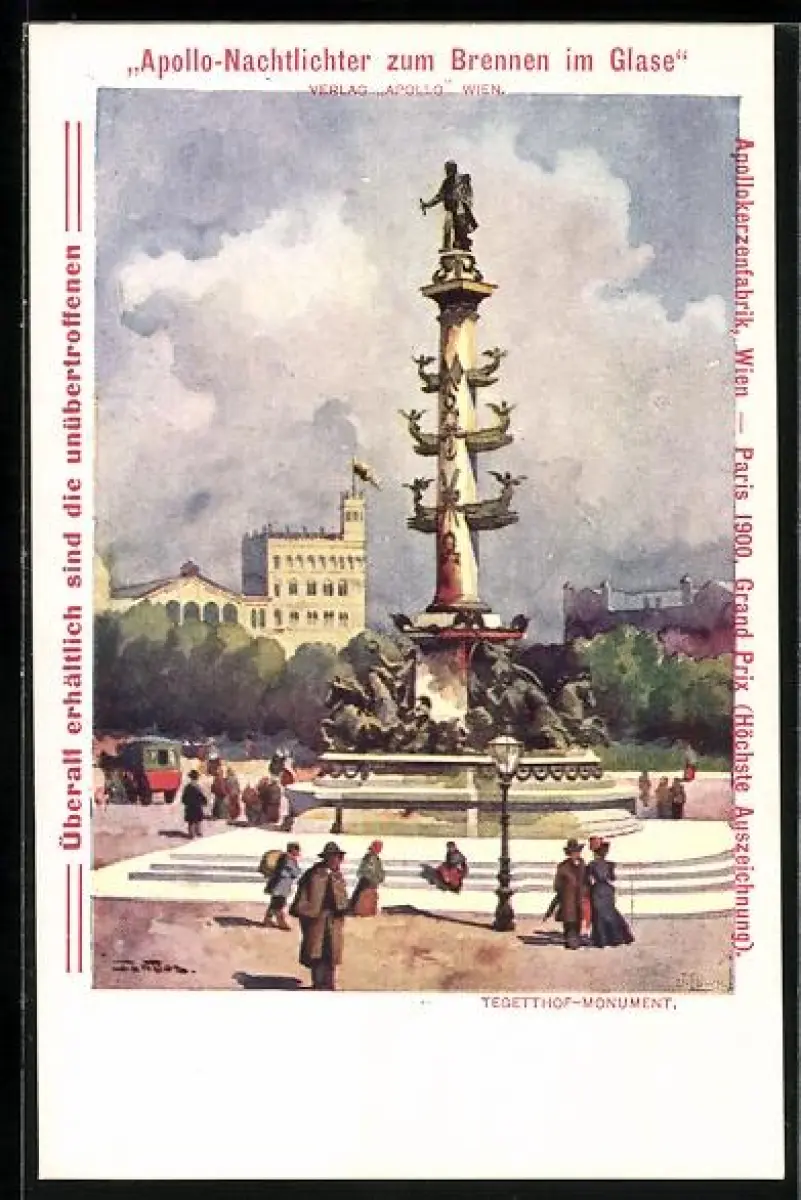 Künstler-AK Wien, Passanten am Tegetthof-Monument