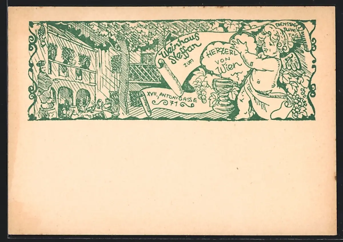 Künstler-AK Wien, Restaurant Weinhaus Steffan, Antonigasse 71