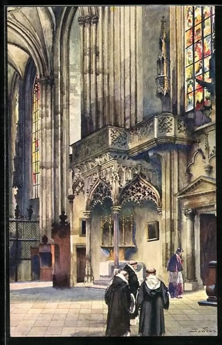 Künstler-AK Wien, Stephanskirche, Leopoldialtar mit Eingang zur grossen Sakristei, Innenansicht