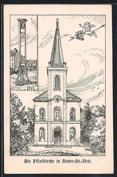 Künstler-AK Wien-Unter-St.-Veit, Die Filialkirche, Glockenweihe 1926