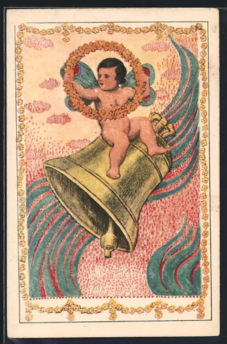 Künstler-AK Wilhelm List: Elfe sitzt auf einer Glocke, Jugendstil