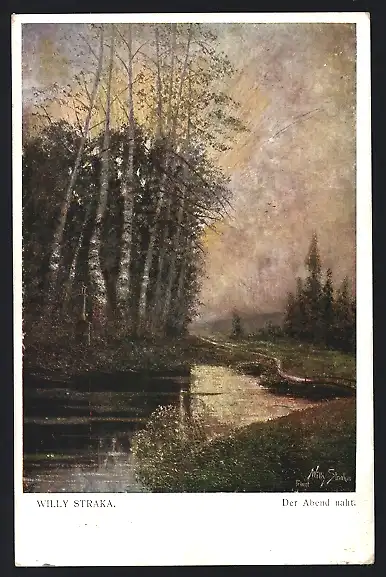 Künstler-AK Willy Straka: Der Abend naht, Landschaftsmotiv