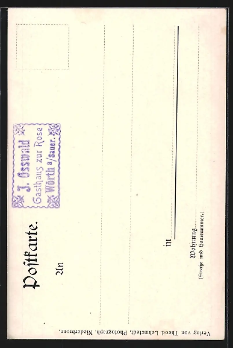Personenbezogene Daten auf der Rückseite der Karte wurden durch blauen Textmarker unkenntlich gemacht. Die blauen Stellen sind auf die Vorderseite durchgeweicht und wirken sich negativ auf das Postkartenfoto aus