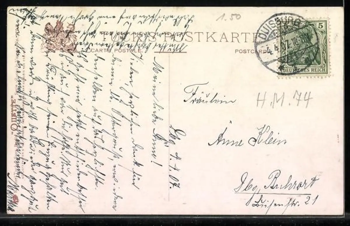 alte Ansichtskarte, gelaufen 1907, Eckknick oben re., guter Zustand