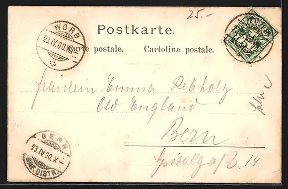 alte Ansichtskarte, gelaufen 1900, Eckknick unten li., guter Zustand