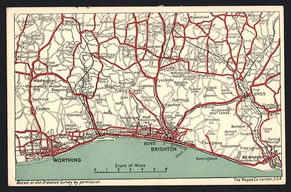 Künstler-AK Worthing, Map of the area with Brighton, Pyecombe and Lewes