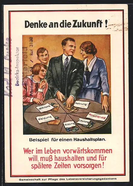 Künstler-AK Wuppertal-Barmen, Rheinisch-Westfälische Lebensversicherung AG, Familie macht einen Haushaltsplan