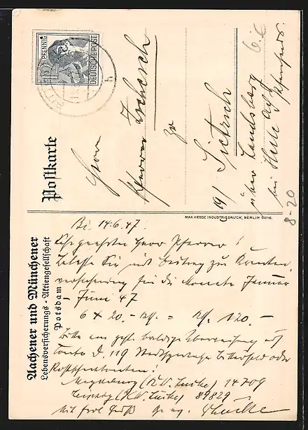 alte Ansichtskarte, gelaufen 1947, guter Zustand
