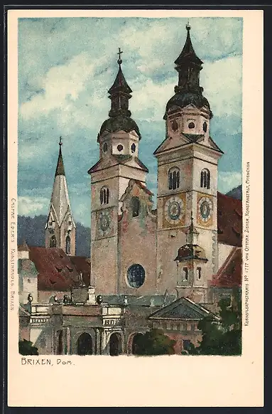 Künstler-AK Zeno Diemer: Brixen, Totalansicht des Doms