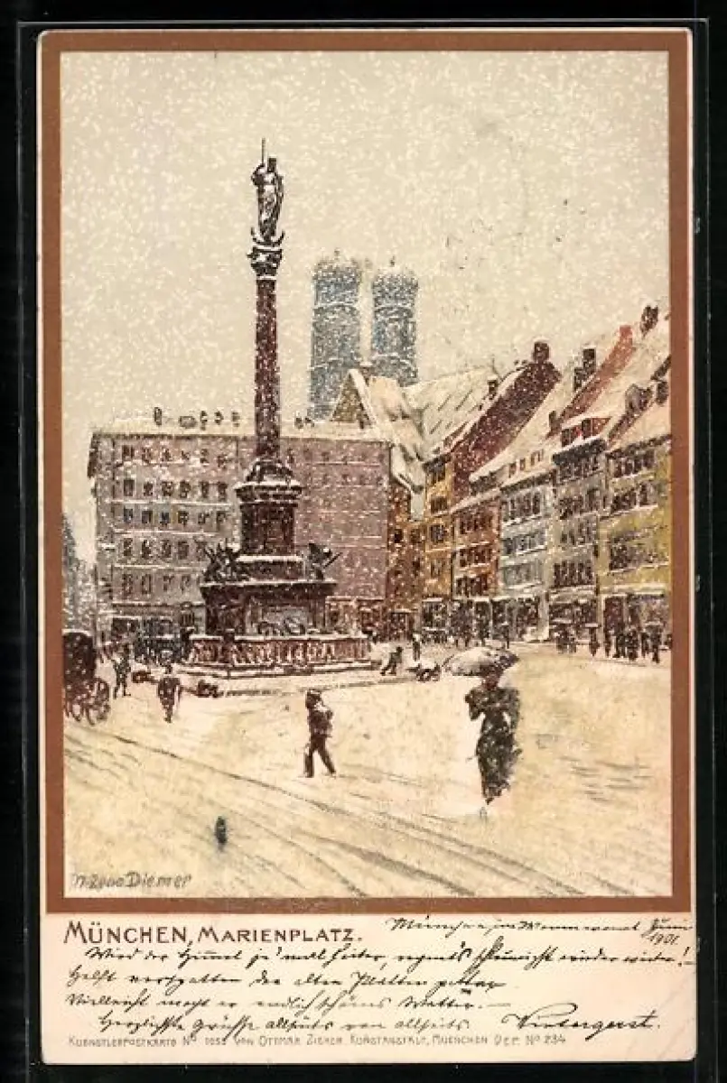 Künstler-AK Zeno Diemer: München, Marienplatz