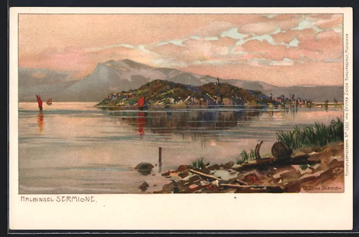 Künstler-AK Zeno Diemer: Sermione, Blick auf die Halbinsel