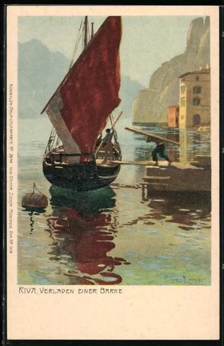 Künstler-AK Zeno Diemer: Torbole, Verladen einer Barke