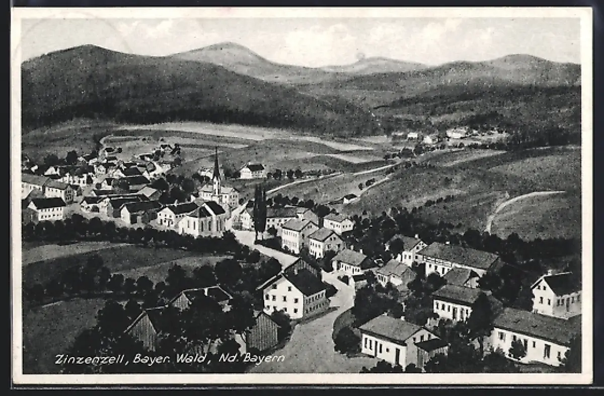 Künstler-AK Zinzenzell / Bayer. Wald, Teilansicht