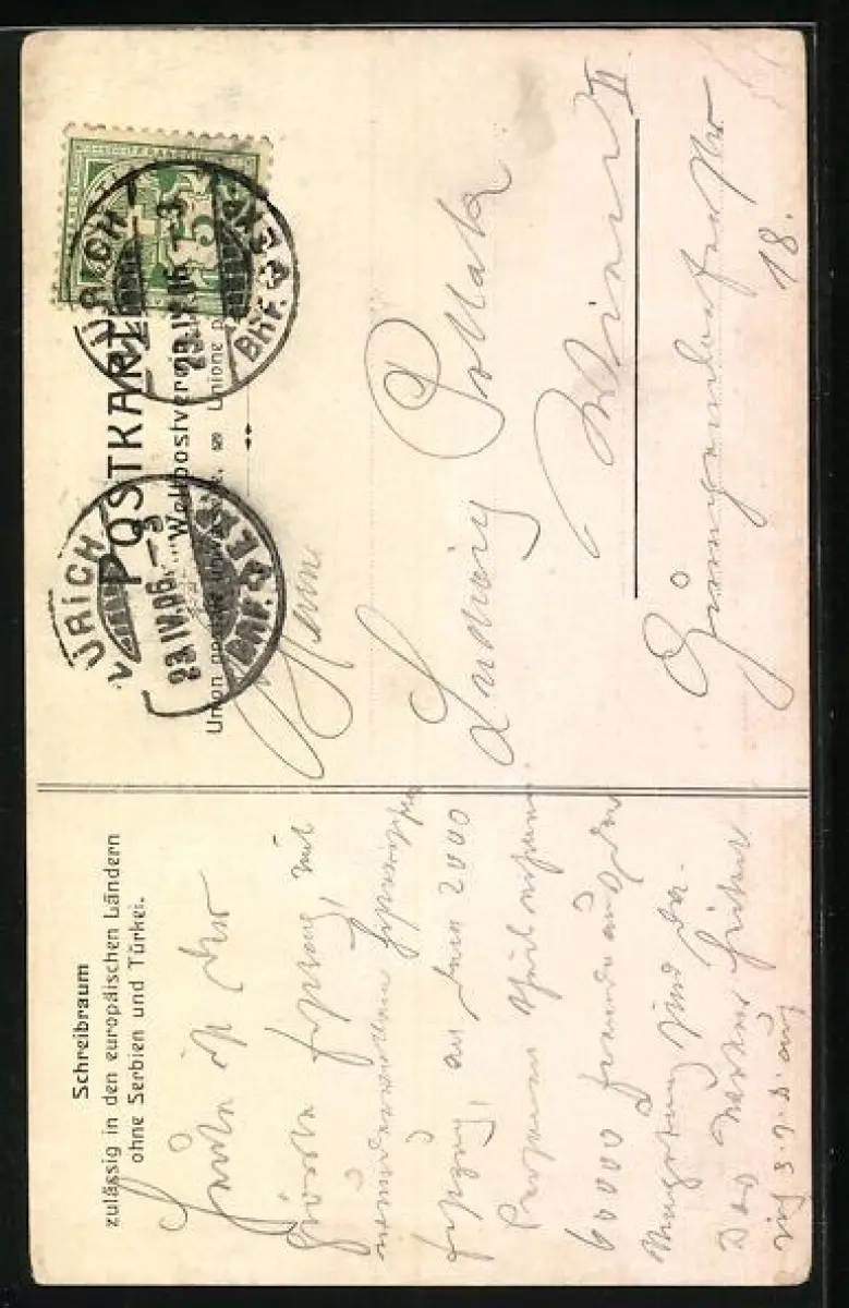 gelaufen 1906, Eckknicke re. oben u. li., guter Zustand