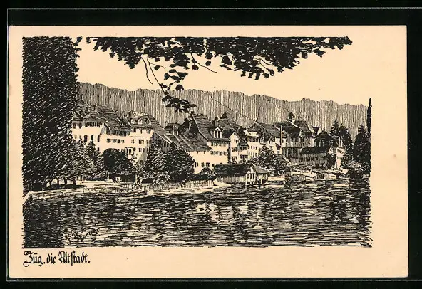 Künstler-AK Zug, Teilansicht der Alt-Stadt