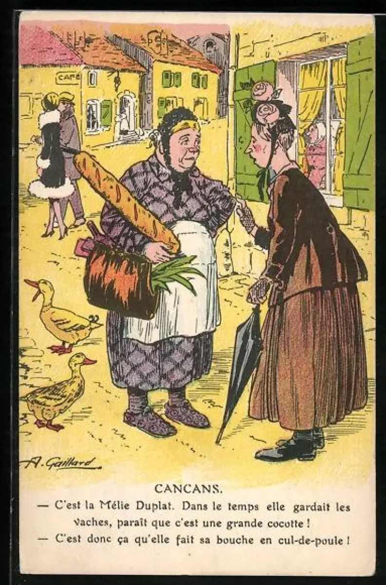 Künstler-AK Zwei Damen unterhalten sich auf der Strasse
