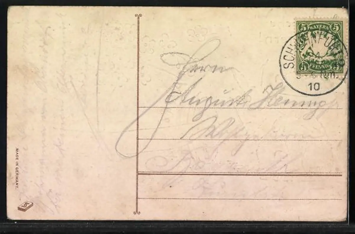 alte Ansichtskarte, gelaufen 1910, Eckknick li. unten, Abriebspur li. oben, guter Zustand