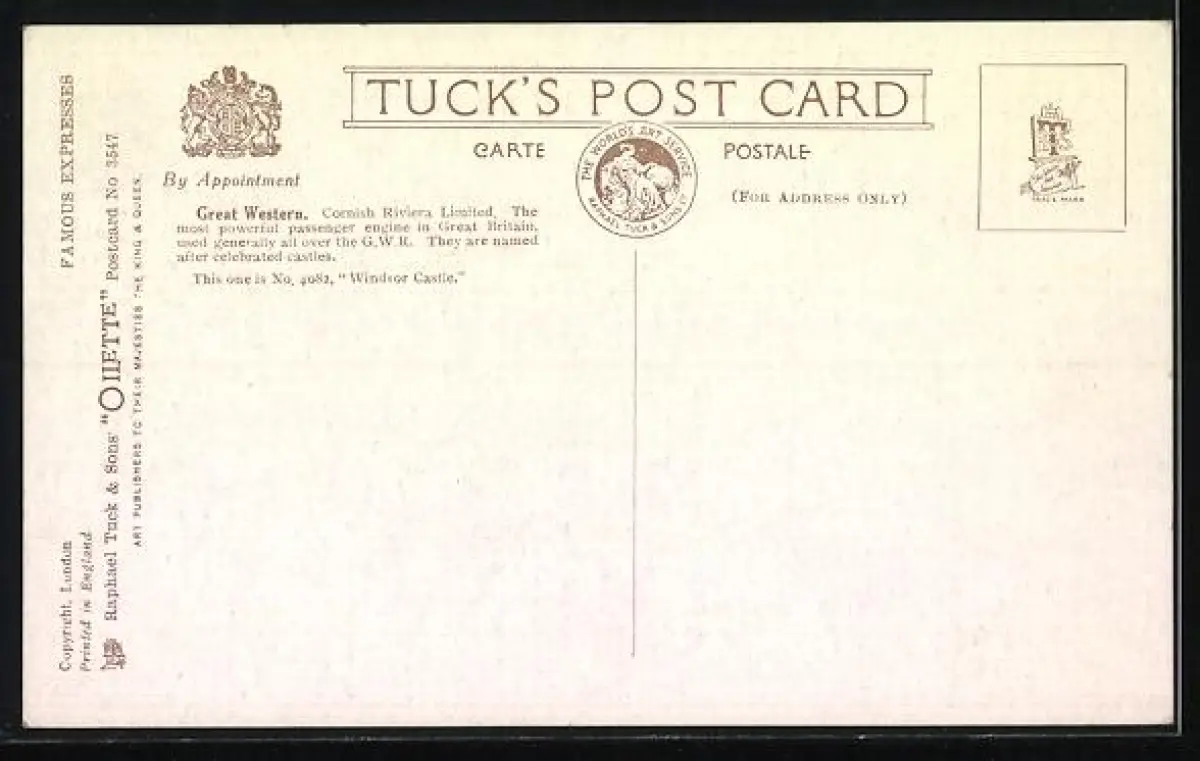 Künstler-AK englische Eisenbahn Windsor Castle der Great Western Railway-Gesellschaft