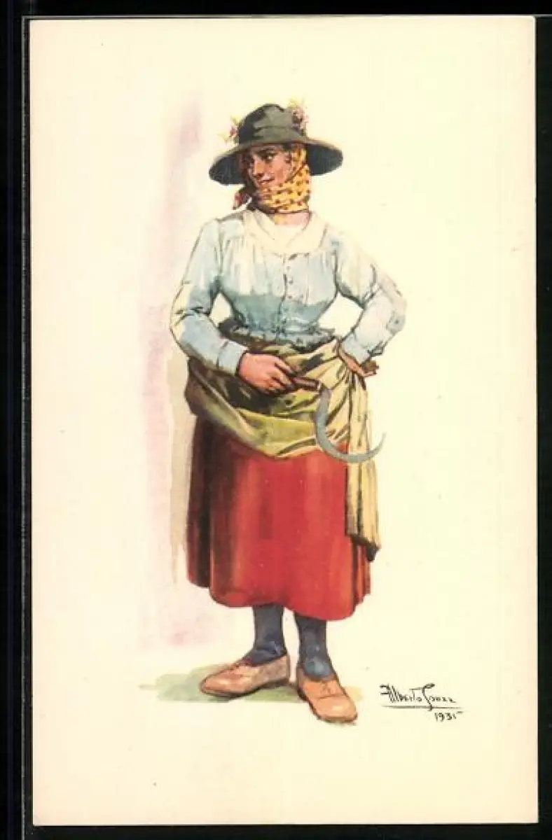Künstler-AK portugiesische Schnitterin in Volkstracht