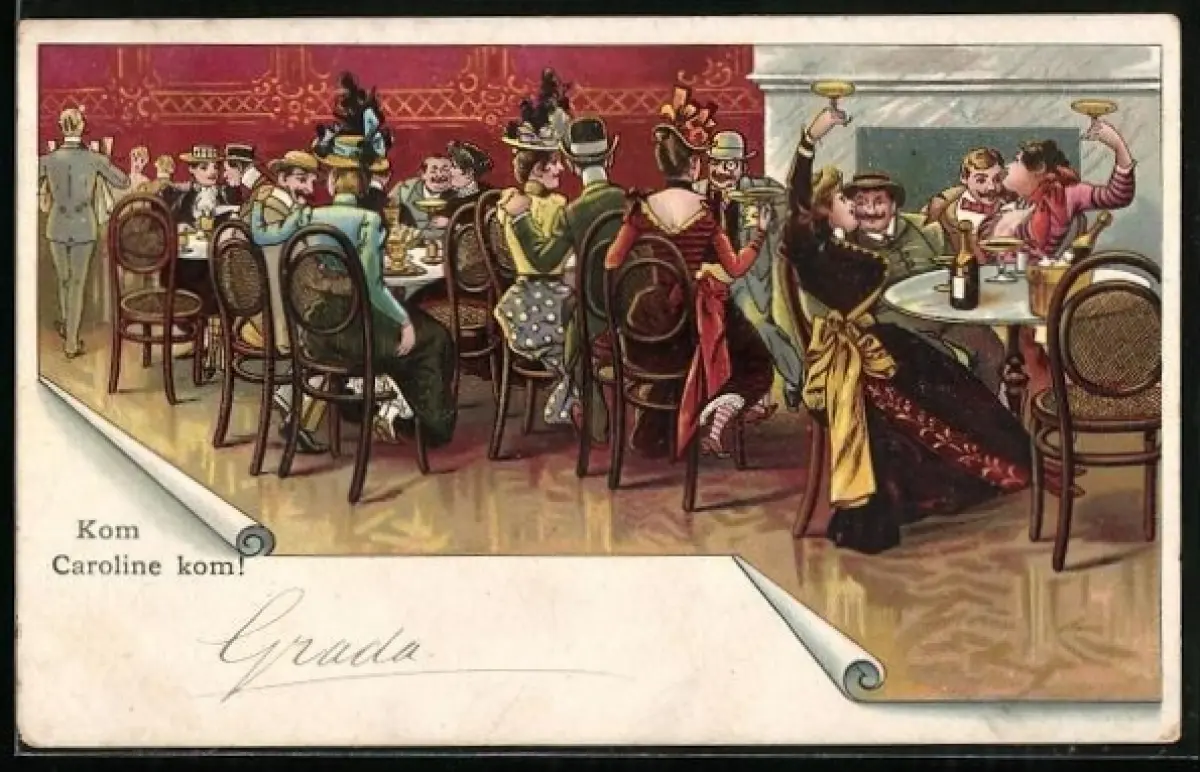 Künstler-AK 's-Gravenhage, Gäste im Nachtcafe