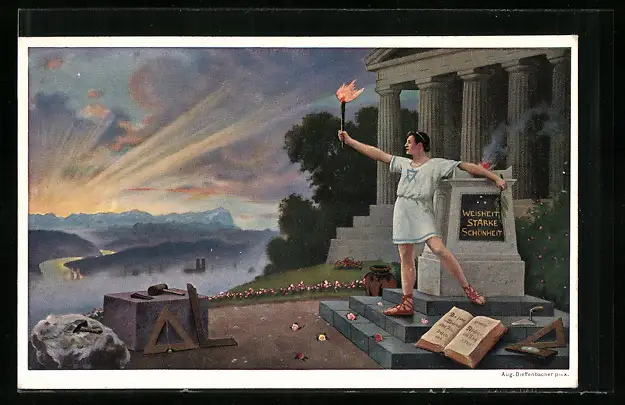 Künstler-AK sign. Aug. Dieffenbacher: Karlsruhe, Johannisloge zur Pyramide, Hebelstrasse 21
