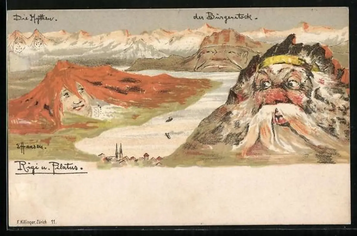 Künstler-AK sign. E. Hansen / Emil Nolde, Killinger Nr. 11: Rigi und Pilatus mit Bürgenstock, Berggesichter