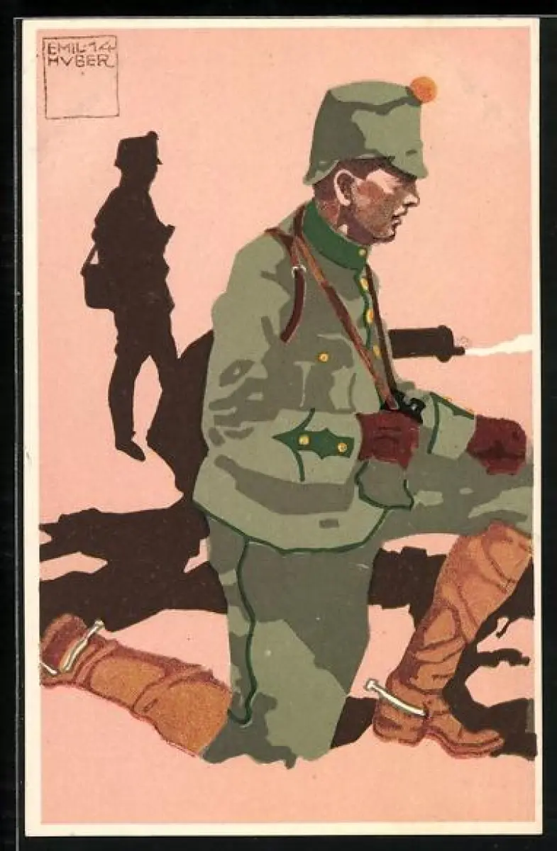 Künstler-AK sign. Emil Huber: Felduniform - Neue Ordonnanz, 2. Infanterie-Mitrailleure - Lieutnant
