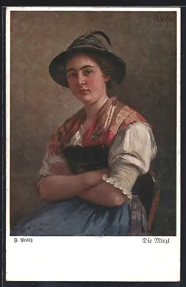 Künstler-AK sign. F. Prölss: Die Mirzl mit verschränkten Armen