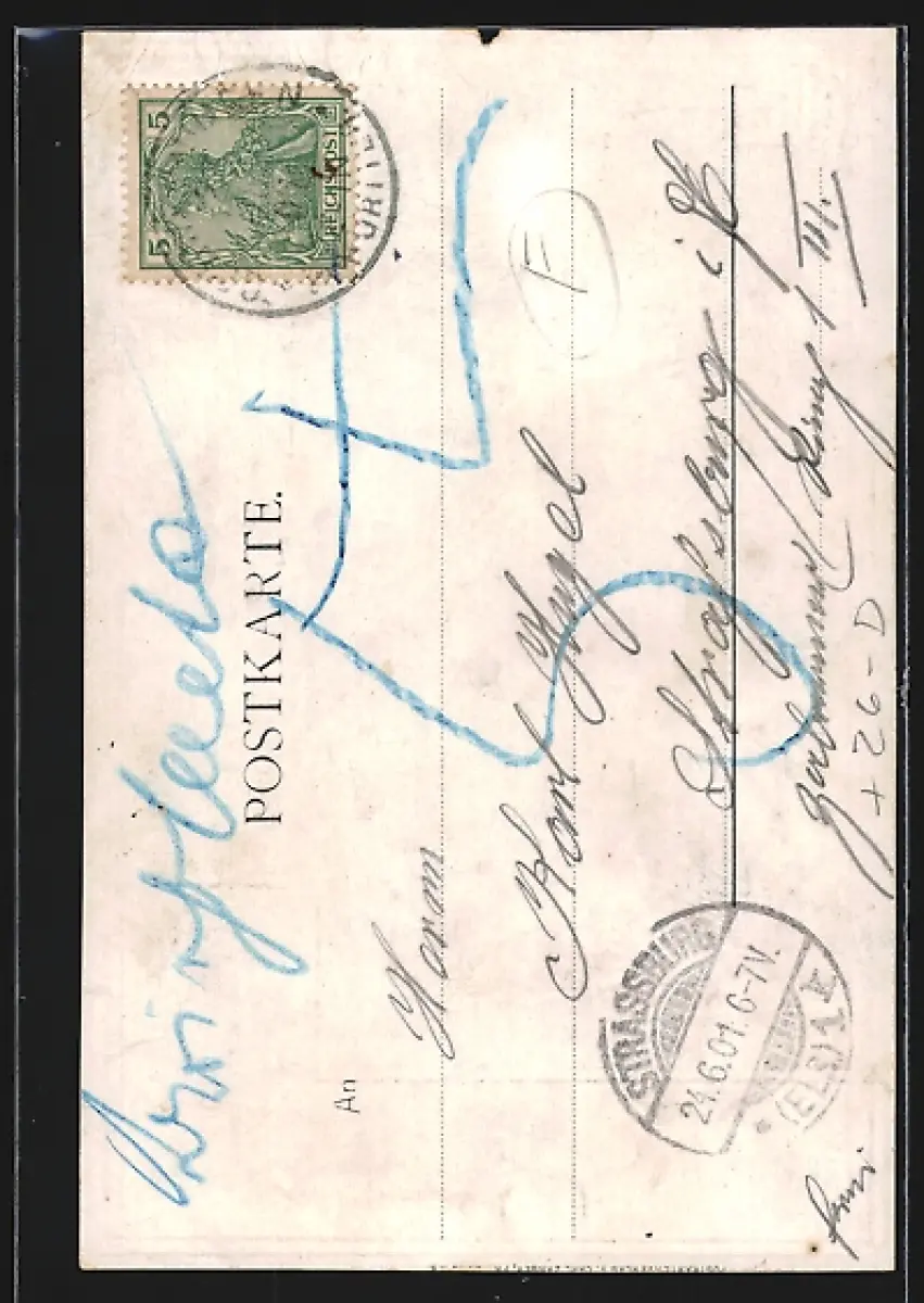 alte Ansichtskarte, gelaufen 1901, kl. Kantenschaden oben mittig, guter Zustand
