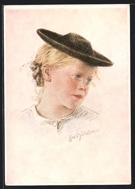 Künstler-AK sign. H. von Schlieben: Porträt eines Mädchens mit Hut