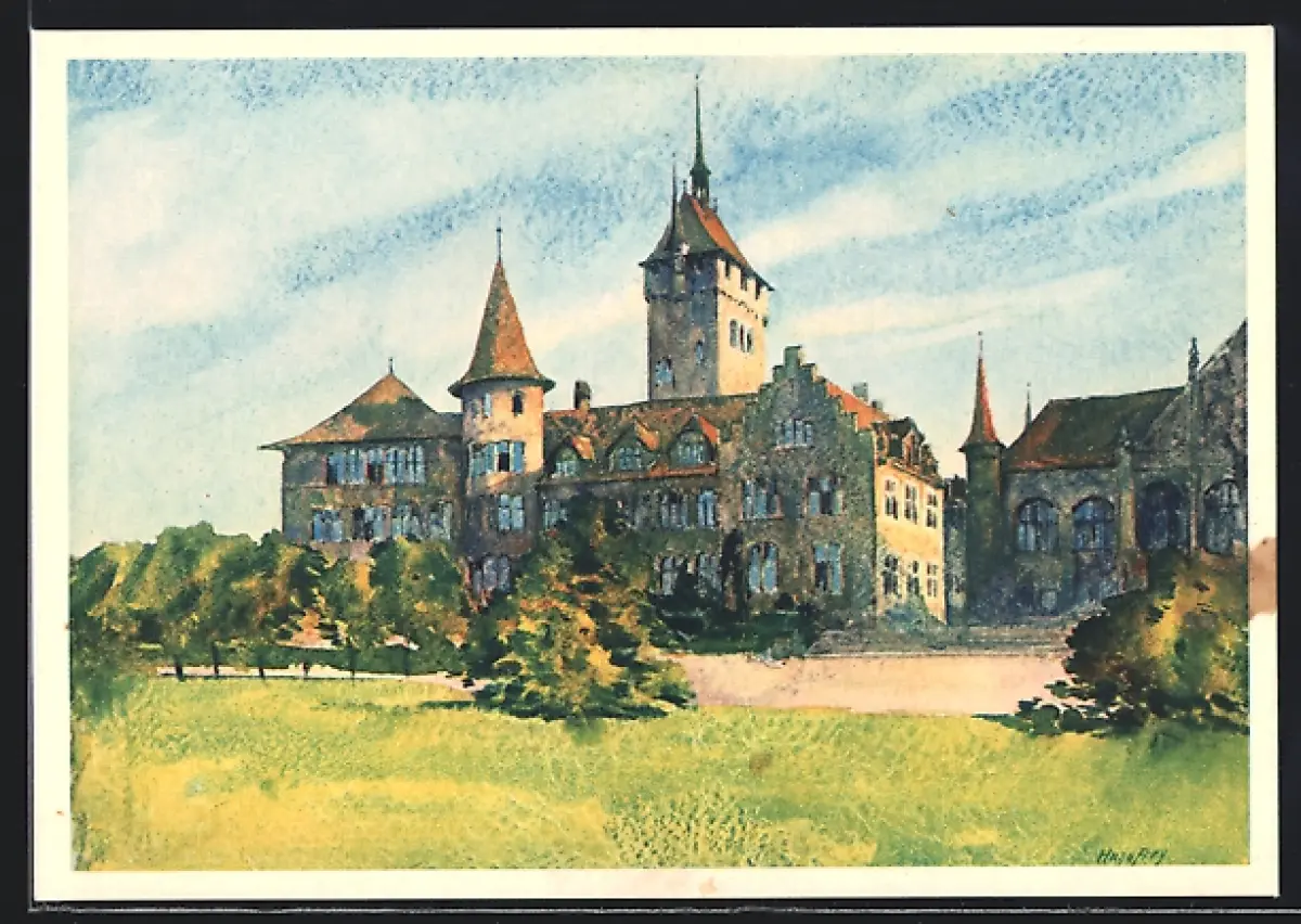 Künstler-AK sign. Hugo Frey: Zürich, Landesmuseum mit Gartenanlage