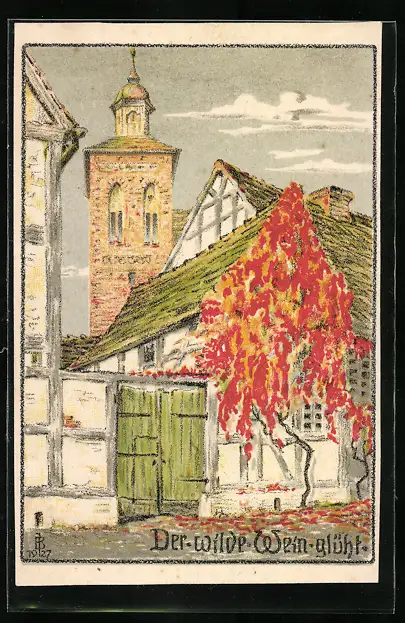 Künstler-AK sign. J. Bröcke: Der wilde Wein glüht