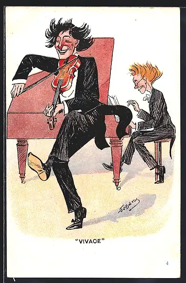 Künstler-AK sign. J. U. Boetius: Mann spielt Geige, Pianst sitzt am Klavier