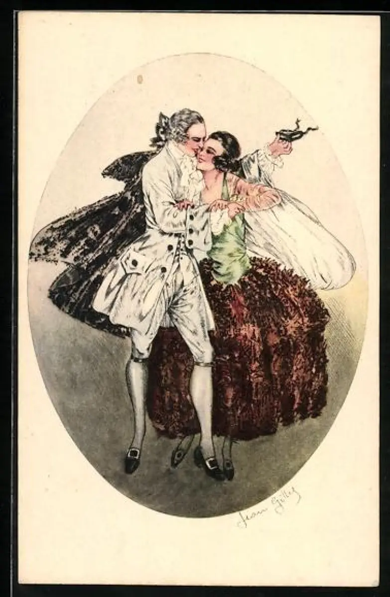 Künstler-AK sign. Jean Gilley: Barockpaar in histor. Mode