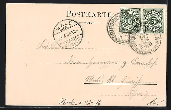 alte Ansichtskarte, gelaufen 1900, Bugspur unten re., guter Zustand