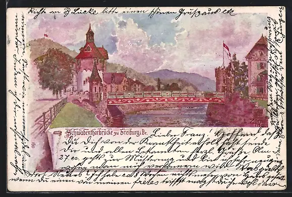 Künstler-AK sign. L. Zorn: Freiburg, Partie an der Schwabentorbrücke