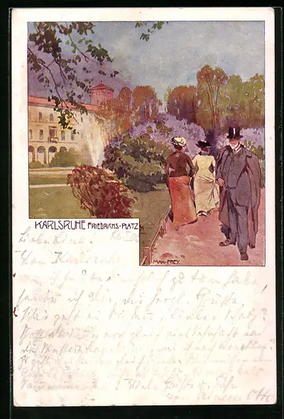 Künstler-AK sign. Max Frey: Karlsruhe, Flaneure auf dem Friedrichs-Platz