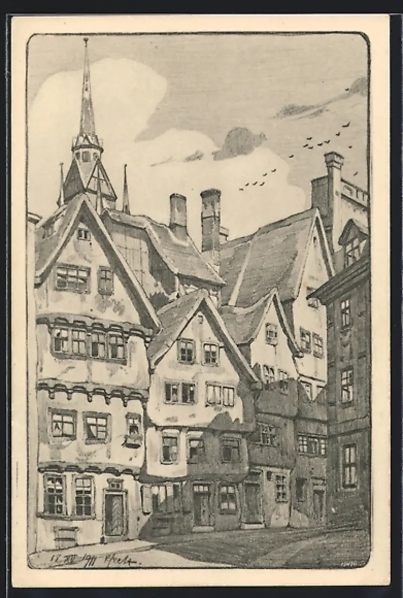 Künstler-AK sign. Paul Hecht: Halle a. Saale, Trödel mit Fassaden