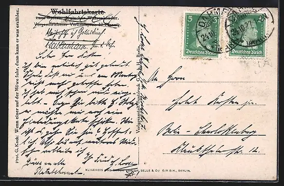 alte Ansichtskarte, gelaufen 1927, Stecknadellöcher unten mittig und oben mittig, guter Zustand