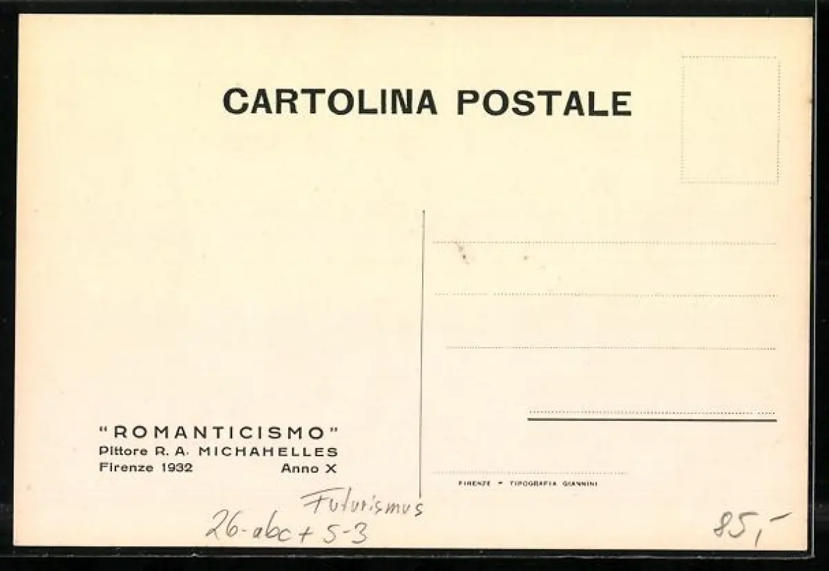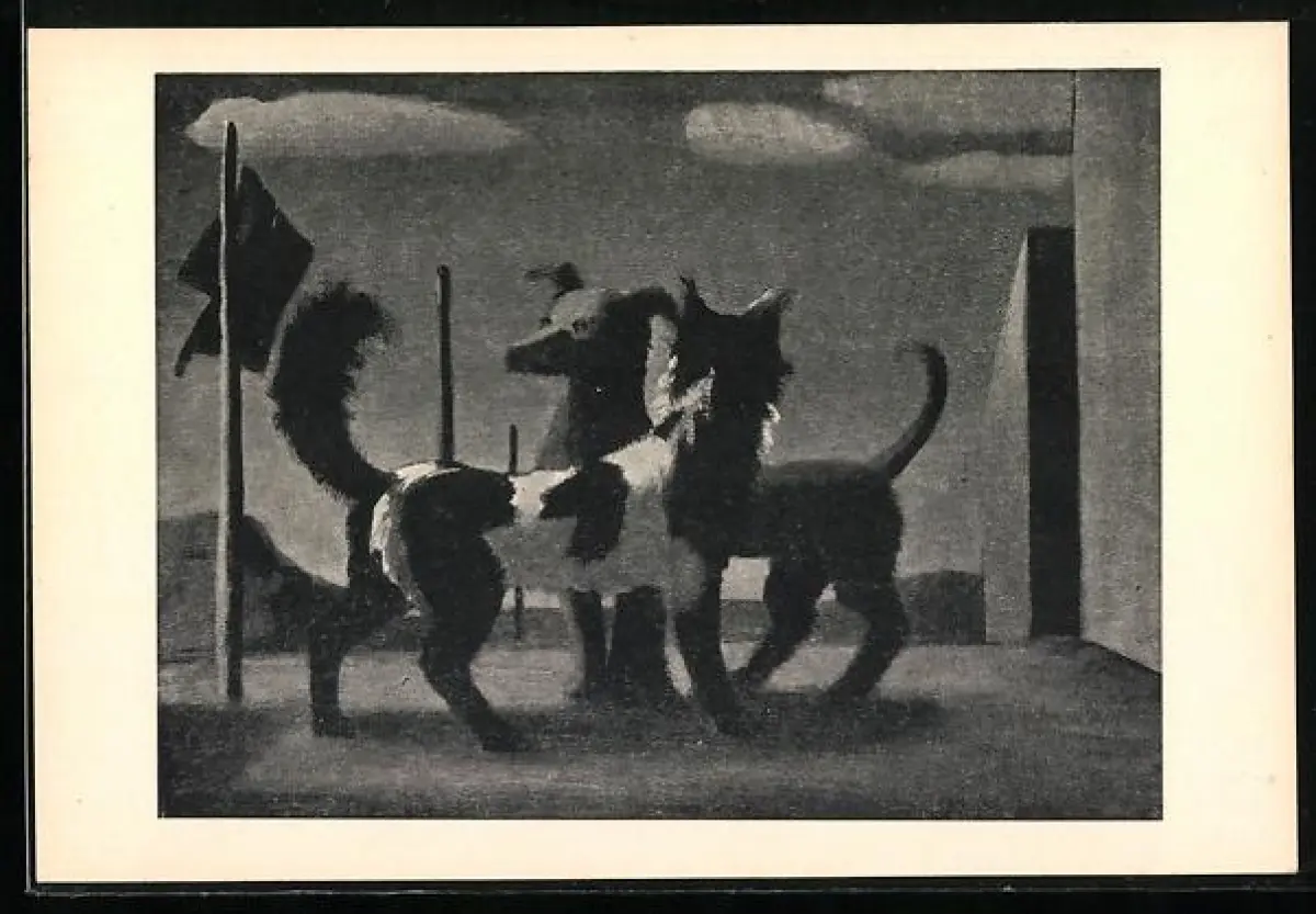 Künstler-AK sign. R. A. Michahelles: Romanticismo, Zwei Hunde bei Nacht, Futurismus