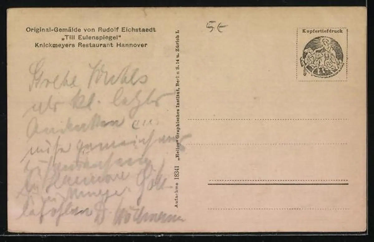Künstler-AK sign. Rudolf Eichstaedt: Till Eulenspiegel, Knickmeyers Restaurant Hannover