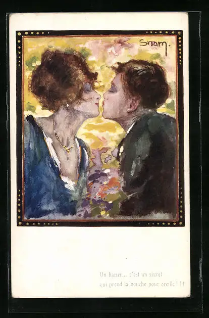 Künstler-AK sign. Snam: Herr küsst eine Dame