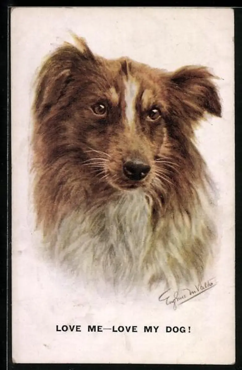 Künstler-AK sign. Valter: Brauner Collie mit treuem Blick