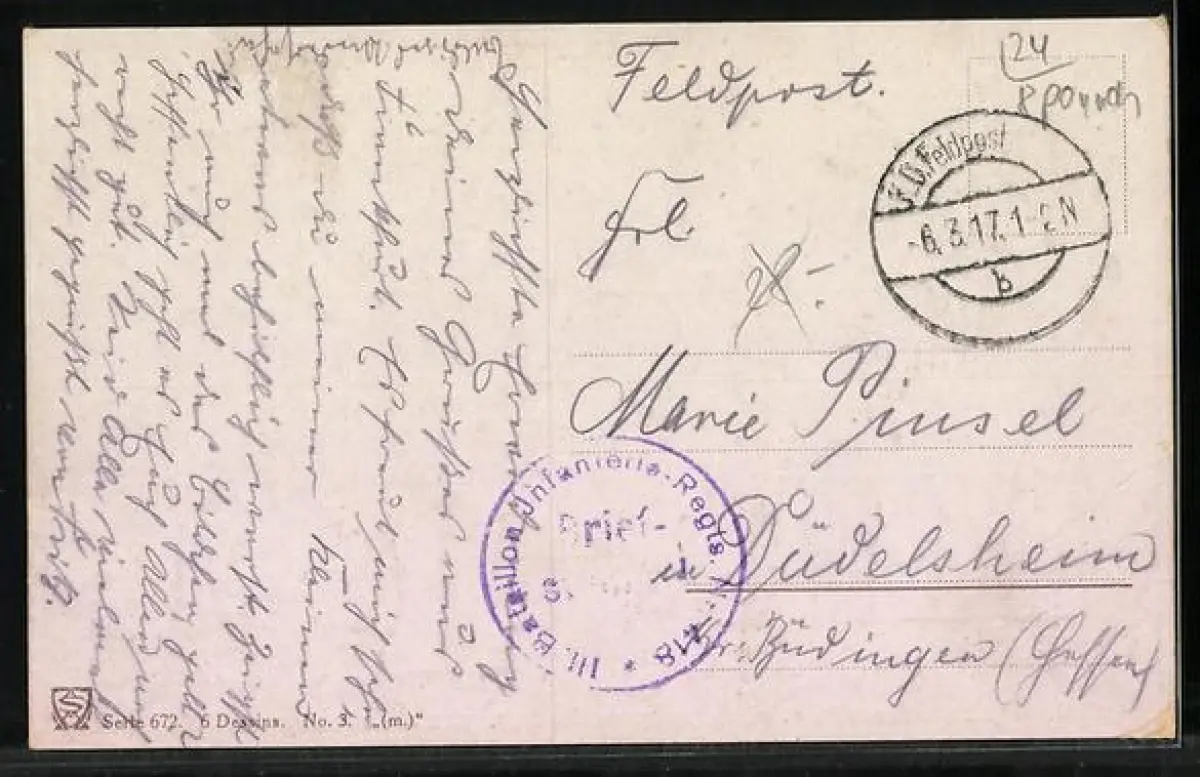 alte Ansichtskarte, gelaufen 1917, Bugspur diag. unten li., Eckknick unten re., guter Zustand