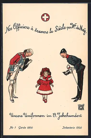 Künstler-AK sign. W. von May: Bern, Schweiz. Landes-Ausstellung 1914, Uniformen, No 1, Garde 1800, Infanterie 1900