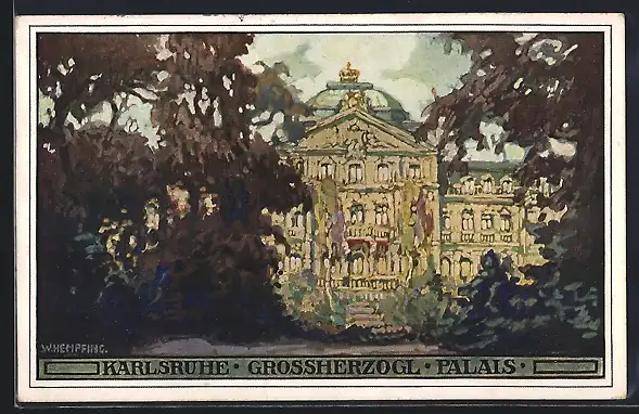 Künstler-AK sign.W. Hempfing: Karlsruhe, Grossherzogliches Palais