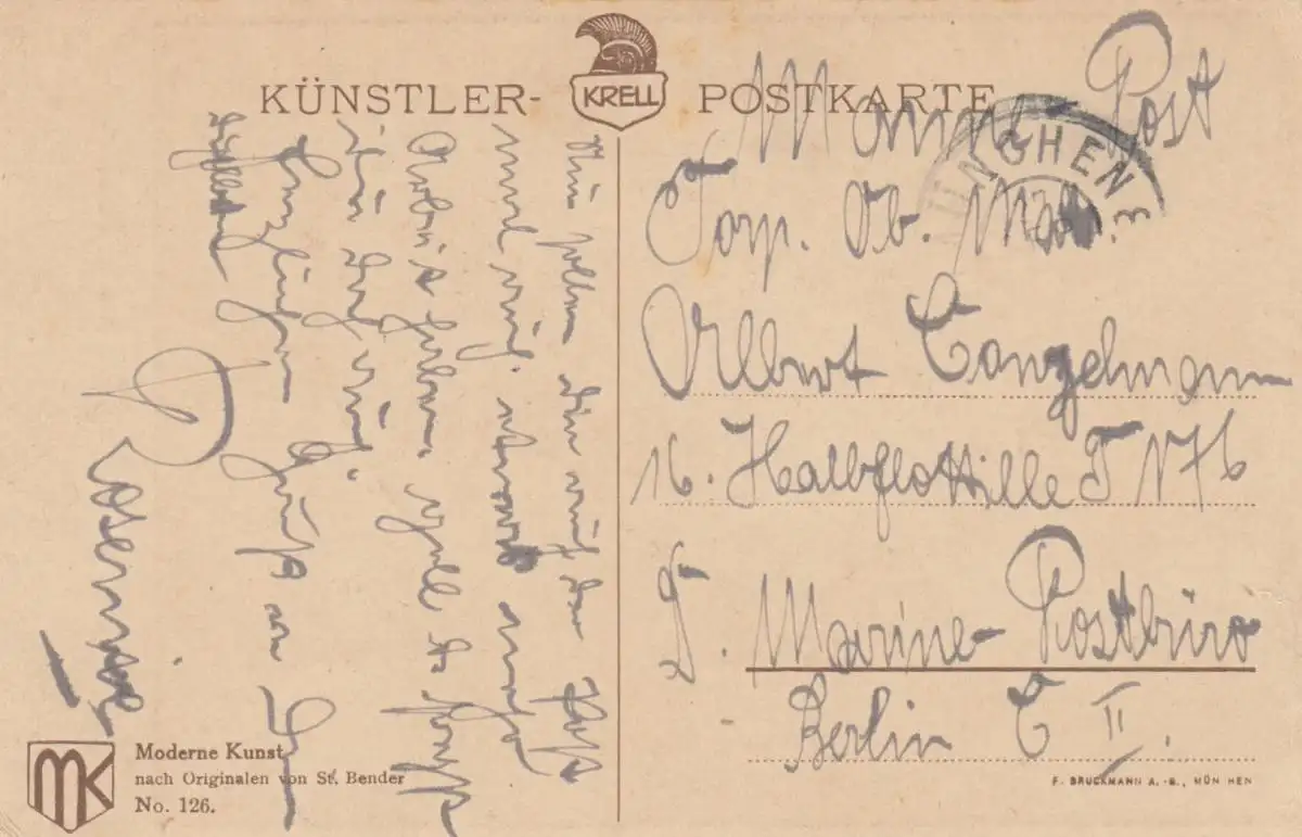 Künstler-Ansichtskarte 1918: nach Halbflottille - Marine Post, an Obermatrose