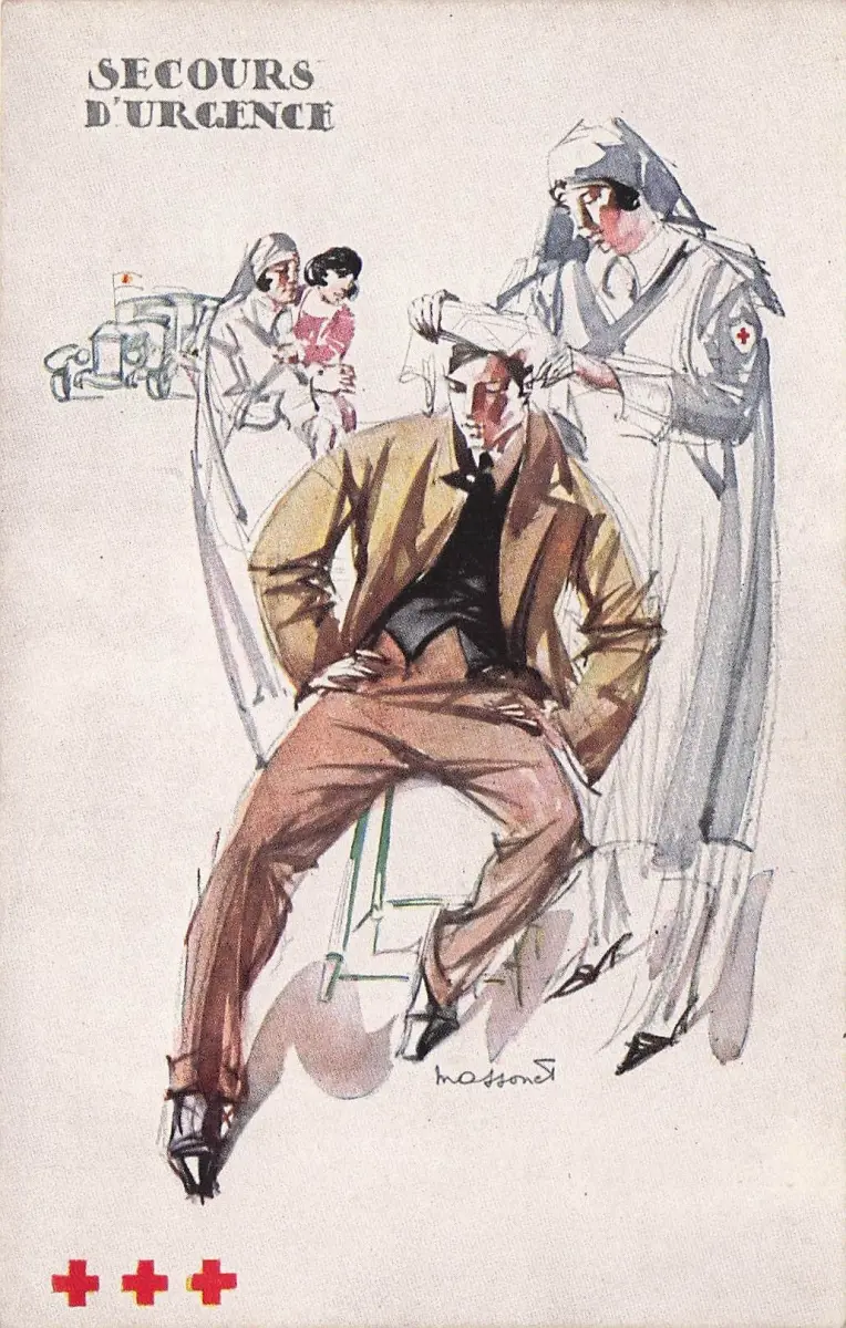 Künstler-Ansichtskarte Rotkreuzschwester verbindet einen Mann -798512